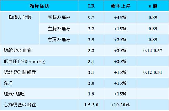 この後、心筋梗塞を疑う55歳の男性の症例をもとに、「心筋梗塞」と診断していく過程で診断に使用される臨床所見についてのκ値を紹介しながら、臨床推論を進めていった。