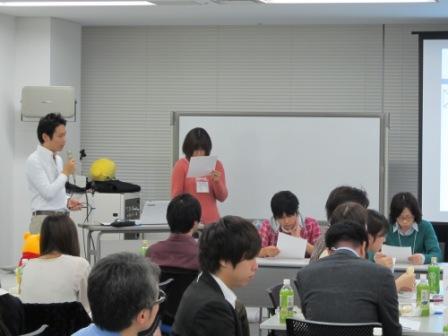 ここでシナリオに基づいて15分間のロールプレイ。意見発表。